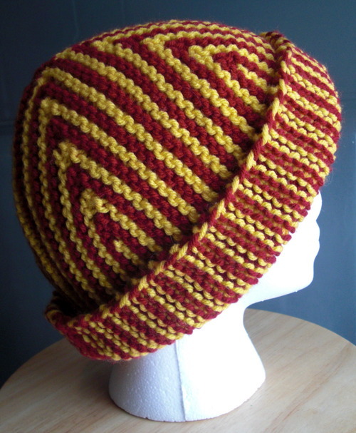 Pattern: Tychus by Brooke T. Higgins Yarn: Caron One Pound in sunflower and claret Another project in Golden Gophers colors. The top view is pretty cool. Here’s another pic.
